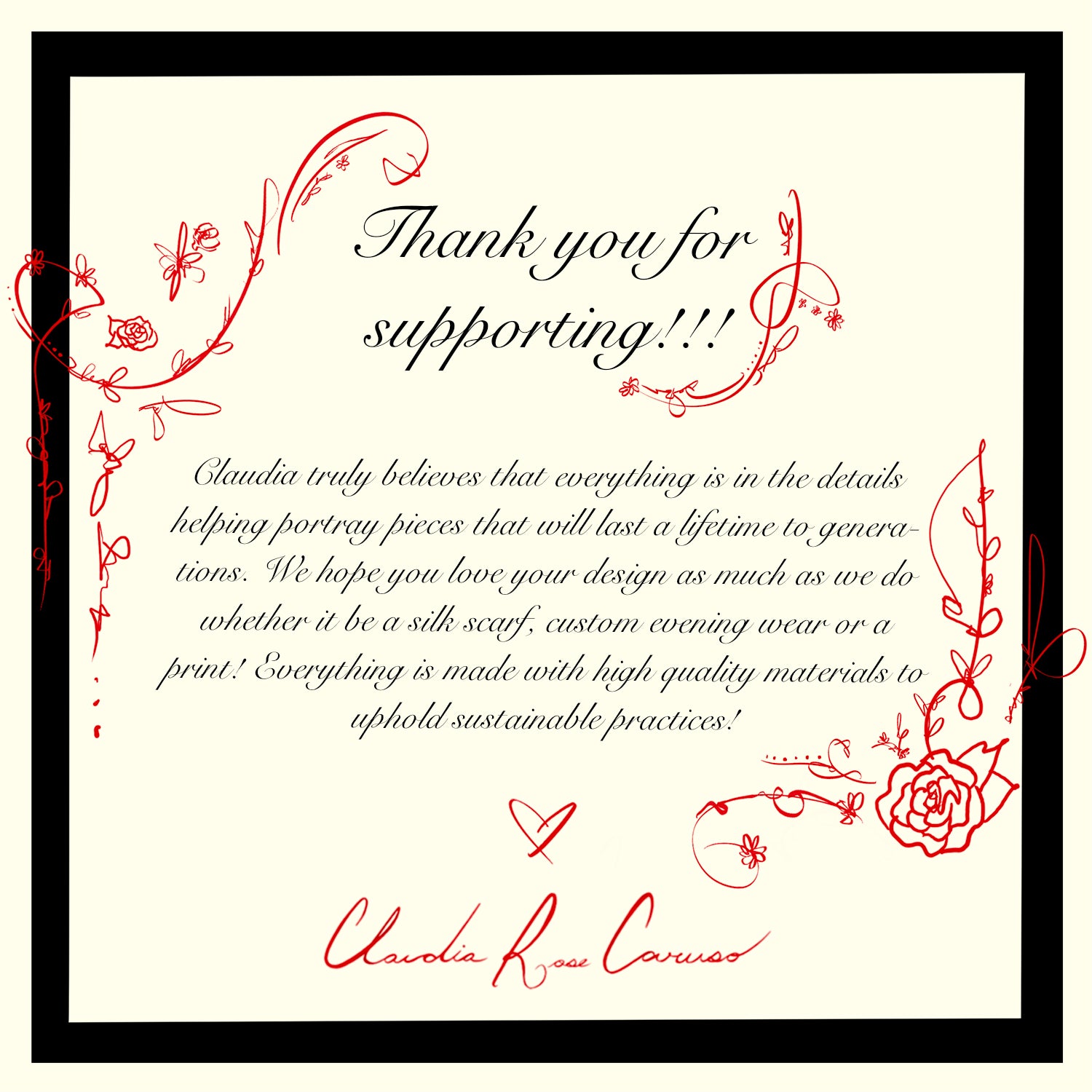 From custom special occasion dresses and intricate embroideries to silk scarves and unique illustrations — reach out to Designer Claudia to discuss all your ideas and bring your visions to life!