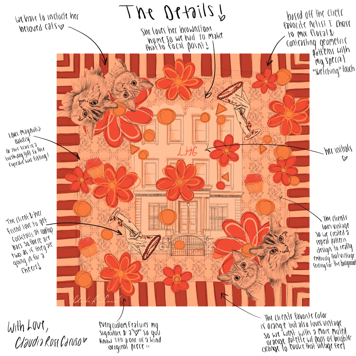 Work one-on-one with designer Claudia to pick out sizing and talk about initial ideas/vision for your custom silk scarf